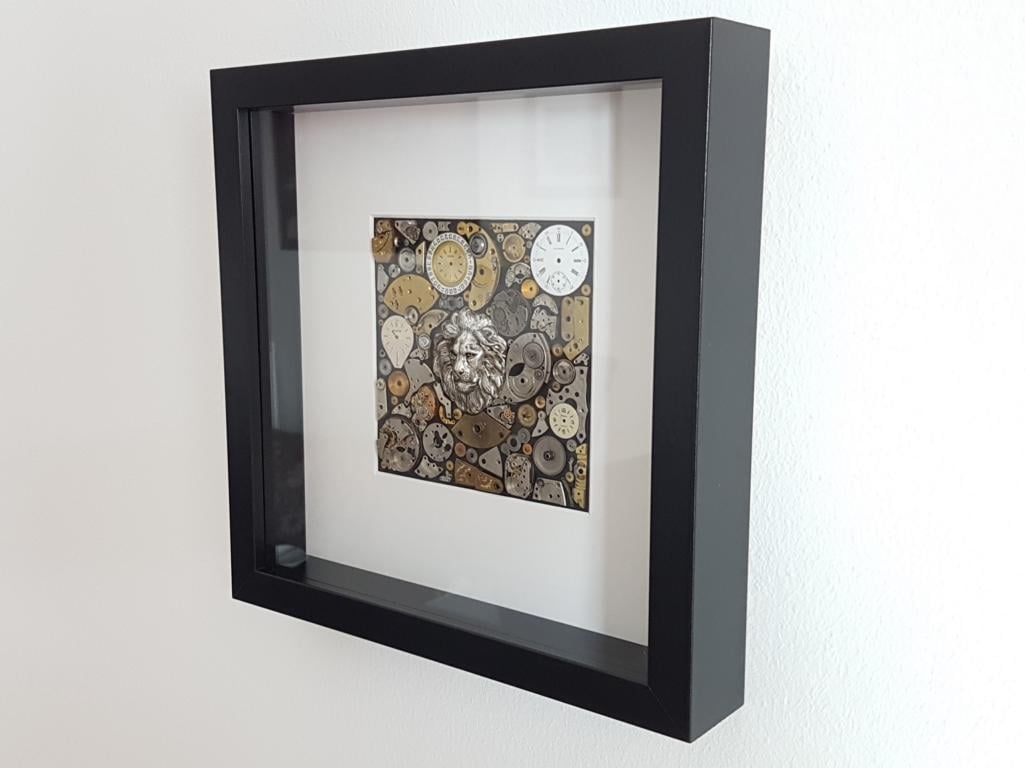 Die Größe des Bilderrahmens beträgt 25x25x4,5cm. Durch die Tiefe des Bilderrahmens (4,5cm) kann das Bild auf einer flachen Ebene aufgestellt werden.