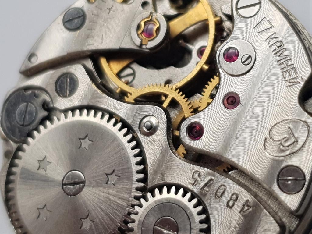 Besitzt 15 Rubine, die zur Lagerung der Zahnräder dienten.