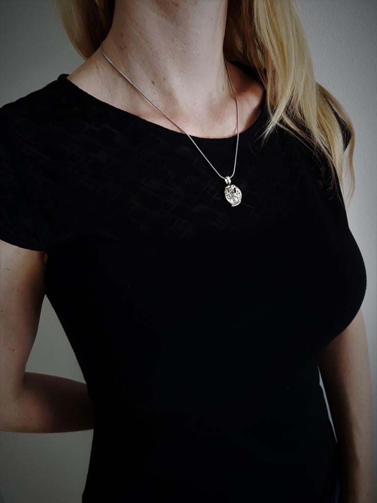 Der Anhänger besitzt eine hochwertige Schlangenkette aus Edelstahl, diese ist 45cm lang.